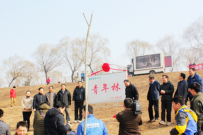 上午9時,段店管理段黃河畔彩旗飄揚(yáng),人頭攢動,槐蔭區(qū)委書記李繼民等領(lǐng)導(dǎo)一行出席“青年林”揭牌儀式,并種下了綠色行動的第一棵樹!