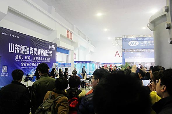 山東(國際)制漿造紙技術(shù)及裝備展覽會已成功舉辦十年,展會展出面積12000平方米,參展商約400余家,專業(yè)觀眾達15000余人,山東德瑞克攜2015新上市升級版產(chǎn)品亮相本次展會,其中DRK101A拉力試驗機采用進口直流伺服電機和滾珠絲桿構(gòu)造性能更穩(wěn)定, 中英文自由切換配合智能化 觸摸屏操作更便捷,且實時顯示曲線和數(shù)據(jù)。此外,平滑度儀,耐破度儀,耐折度儀,撕裂度儀,紙箱抗壓機等十余種新型檢測儀器也是山東德瑞克本次展會展出的得意之作,美觀,穩(wěn)定,智能化,適中的價格,深得與會客戶的一致認可與好評。