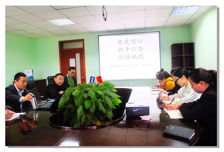 4月1日早上9:00,山東德瑞克公司2015年第二季度工作會議準時召開。本次會議總結了第一季度工作,分析當前市場形勢,部署了第二季度工作任務,提出將進一步轉變工作模式、強化管理,推進公司做強做優,更好地服務于新老客戶。