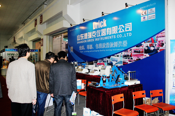 山東(國際)制漿造紙技術及裝備展覽會已成功舉辦了15屆,本次舉辦地點在山東機械設備展覽中心,展會展出面積約20000平米,專業觀眾達到2萬人次,圍繞造紙新技術和節能降耗組織了數場較高水平的技術專題講座。山東德瑞克儀器有限公司攜拉力機、抗壓機、耐破度儀、吸水性測定儀、平滑度儀等十余種新型檢測儀器出展,產品的美觀,穩定,智能化,適中的價格,深得與會客戶的一致認可與好評。