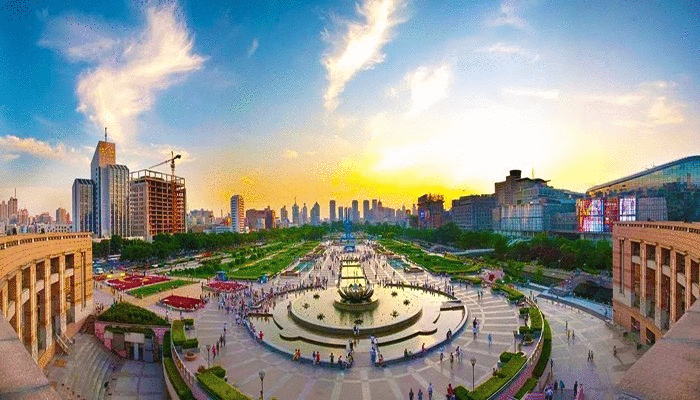 泉城廣場坐落于濟南市中心的繁華地帶,自西向東依次包括: 趵突泉廣場、濟南名士林、泉標廣場、下沉廣場、頤天園及童樂園、濱河廣場、銀座購物廣場、荷花音樂噴泉、四季花園、文化長廊、科技館等十余部分。