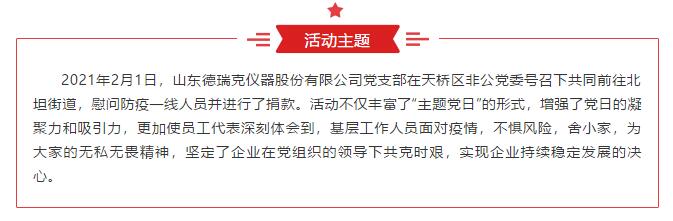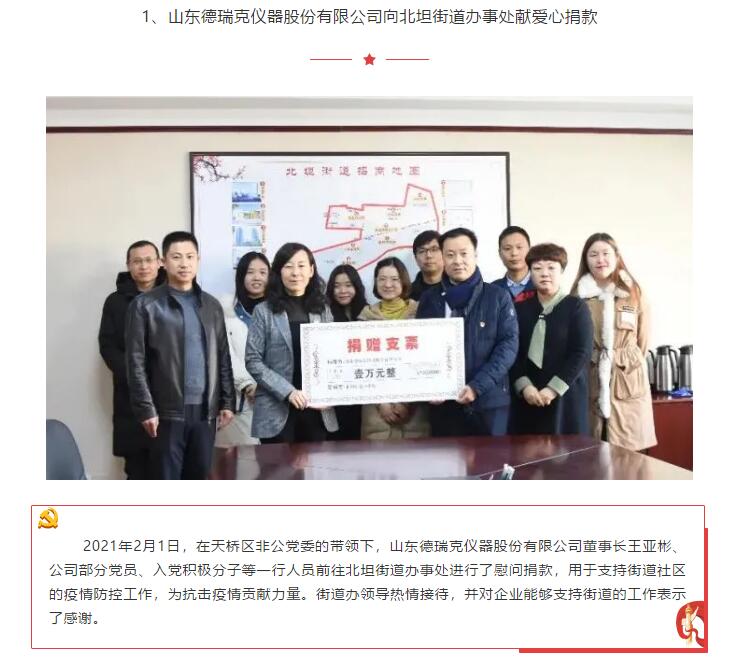 凝聚黨心 共同抗疫:山東德瑞克儀器股份有限公司黨支部響應天橋區(qū)非公黨委號召向街道奉獻愛心